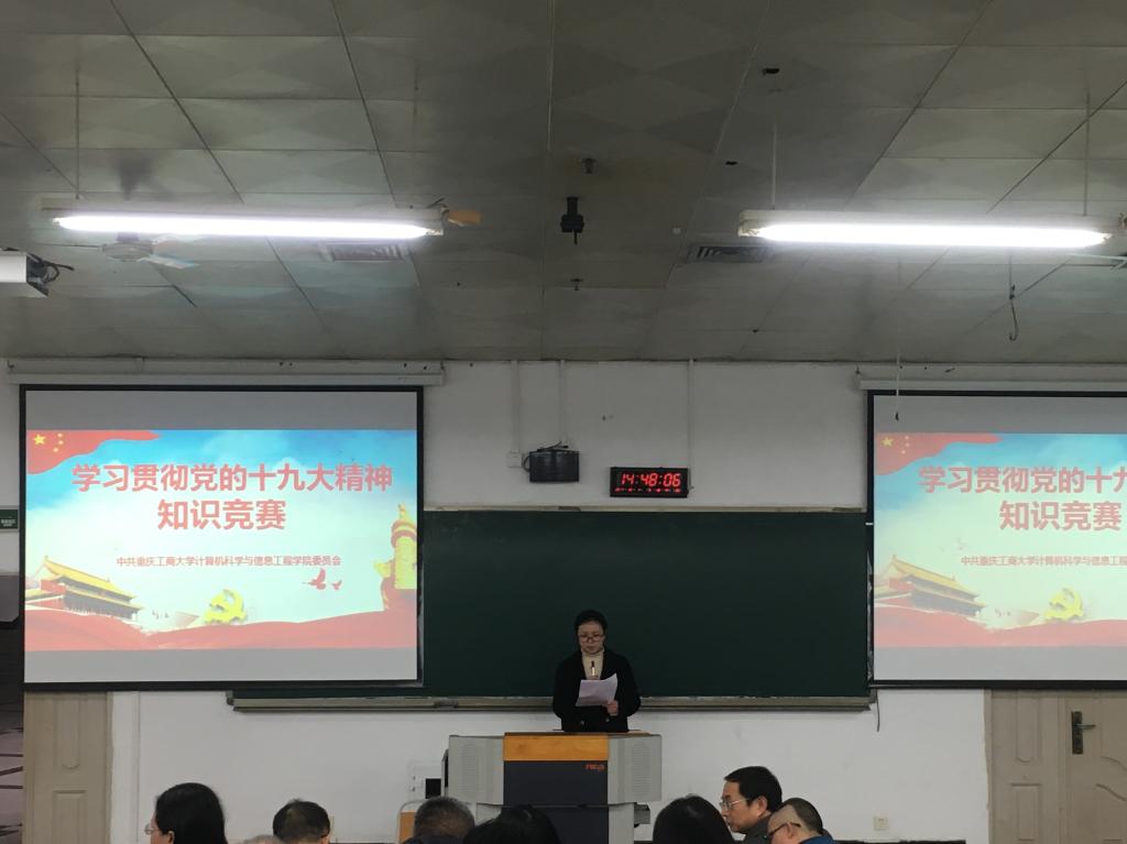 党的十九大是我们党迈进新时代、开启新征程、续写新篇章的历史性盛会。为深入学习贯彻党的十九大精神以及习近平新时代中国特色社会主义思想,展现新时代的新气象新作为。计算机科学与信息工程学院于2017年12月1日下午2点在慧智楼90209教室举办学习贯彻党的十九大精神知识竞赛,计信学院分党委书记段远鹏、院长何希平,全院教职工参与。