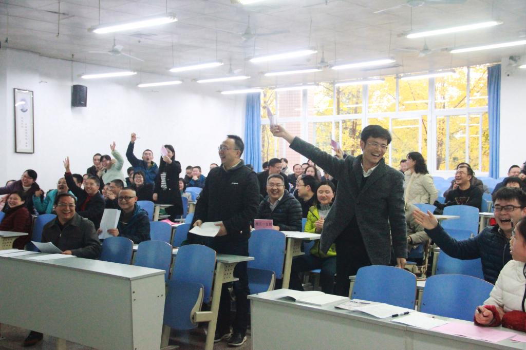 此次知识竞赛以党的十九大为主题,以党支部和系部作为基础组建参赛队伍,每队选拔6人作为小队代表参与现场答题,现场答题方式共分为:团队必答题、抢答题、风险题、加赛题以及互动题等五个环节。全院教职工凭借对十九大报告、新党章等知识的学习和理解,踊跃参与,尤其在抢答题环节,教职工的热情更是被充分点燃,争先恐后的起立作答,充分展现了积极学习十九大精神的成果。在进行了激烈的比拼后,最终由教工三队、教工四队获得一等奖,教工一队、教工二队、教工五队和学工行政队获得二等奖,分党委书记段远鹏、院长何希平为获奖队颁奖,此次知识竞赛在欢乐气氛中圆满结束。