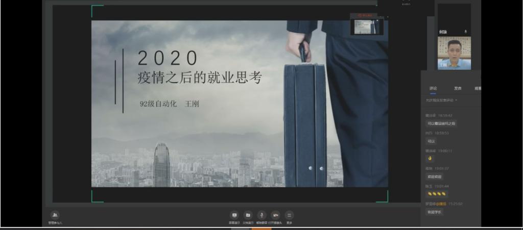 为帮助学生进一步了解疫情影响下的就业环境、就业需求,增强学生个人职业规划能力,树立就业发展意识,6月19日学院特邀重庆捷旭科技有限公司总经理,院校友分会副会长,92级自动化专业校友王刚,通过企业微信为广大同学开展了一场深入的线上就业讲座。