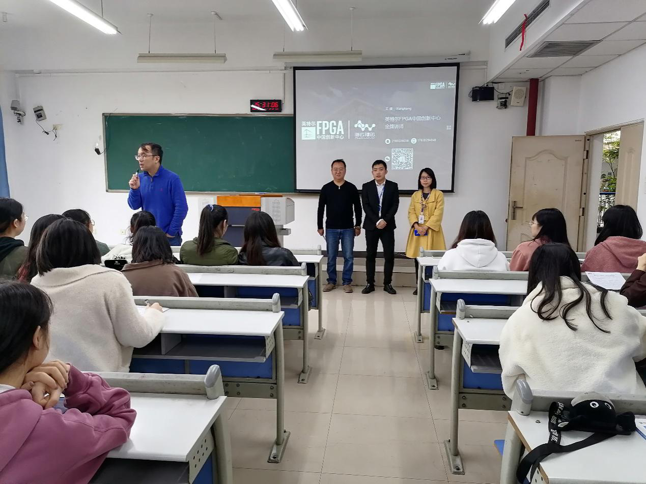 为提高本届毕业生毕业设计水平和促进学生优质就业,把好大学生本科教育最后一道教学质量关,2020年11月3日下午,必赢线路检测3003电子信息工程专业毕业设计指导老师与英特尔FPGA中国创新中心相关技术人员对电子信息工程专业毕业生进行了毕业设计与就业现场宣讲。系主任陆胜、副主任晏力、谭荆等指导老师和70余名本专业大四学生参加了本次宣讲会。