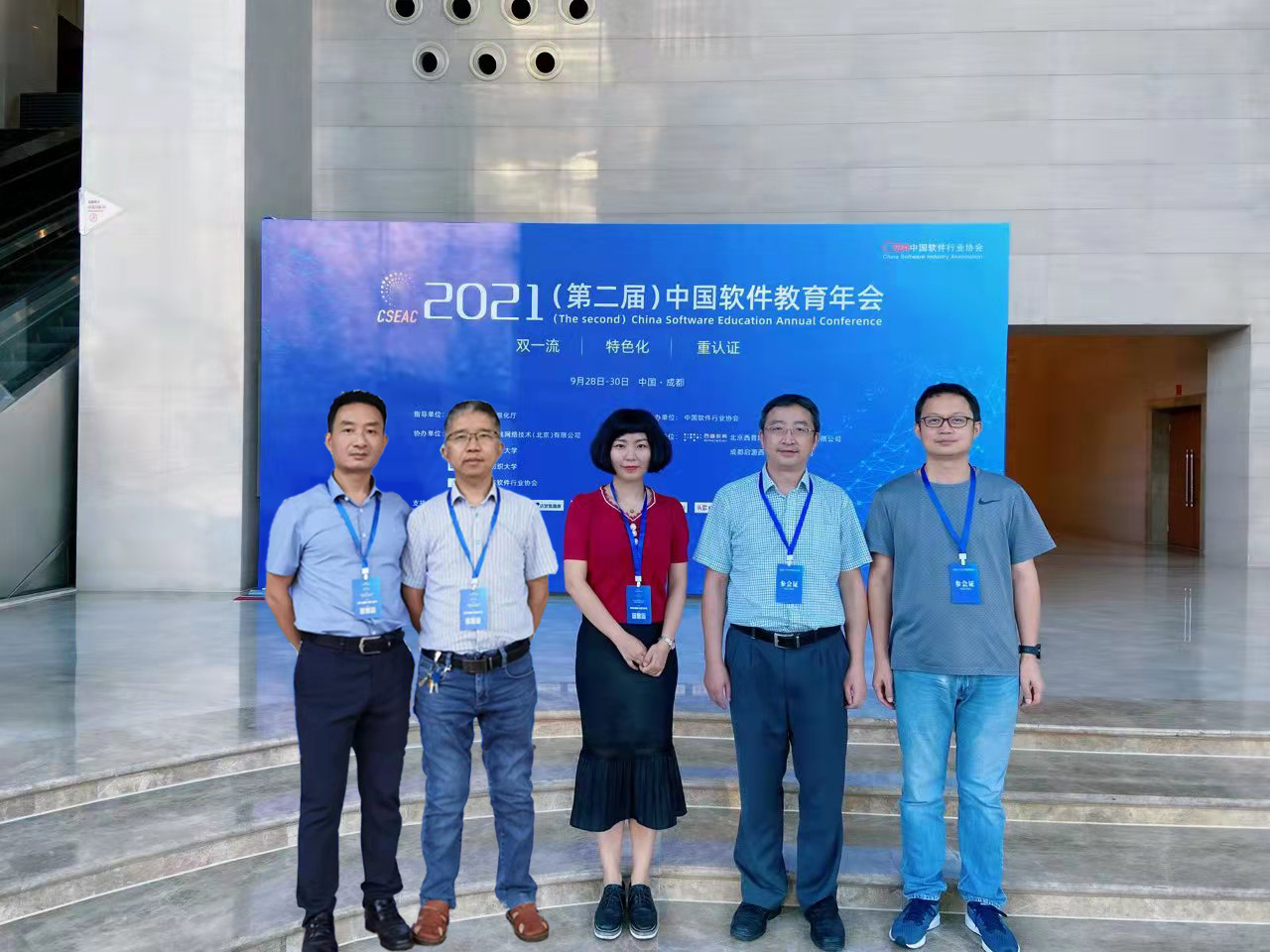 9月28日-30日,2021(第二届)中国软件教育年会在成都举办。必赢3003no1线路检测中心必赢线路检测3003院长唐亮贵带队,副院长杨光祥、计算机系主任杨永斌、副主任朱超平、综合办副主任周元一行5人参会。