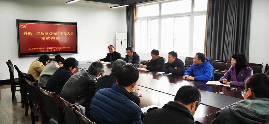 按照学校《关于开展2021年二级班子对所在单位科级干部及重点岗位工作人员廉政约谈的通知》要求,2021年11月12日上午,必赢线路检测3003党委在慧智楼810会议室开展科级干部及重点岗位工作人员集体廉政约谈。学院党委书记何希平、院长唐亮贵、副院长杨光祥、秦华锋,学院科级干部及二级部门负责人参加了集体约谈。