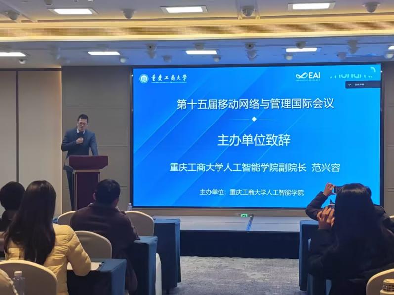 在为期两天的会议中,开幕式、主题报告、多场平行论文分会及交流活动等多项议程有序开展。11月29日上午10点,必赢线路检测3003副院长范兴容在开幕式上致辞,介绍了我校在人工智能与移动网络交叉学科领域的研究与学科建设进展,并强调本次会议旨在搭建高水平的国际合作平台,推动学界与业界的深度融合。